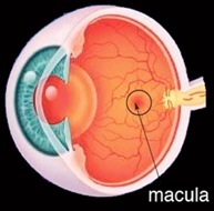 La degenerazione maculare senile è una malattia che colpisce la MACULA (vedi disegno a destra), la porzione centrale della retina che permette la massima acuità visiva e quindi il riconoscimento degli oggetti e dei colori, indispensabile per comportamenti di vita come leggere o guidare.